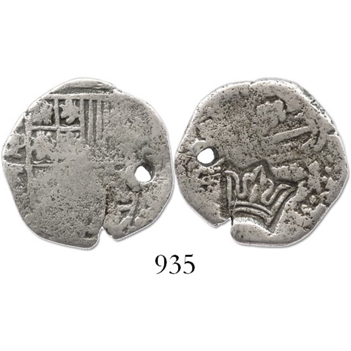 Guatemala, 2 reales, "crown" countermark (1662) on a Potosi, Bolivia, cob 2 reales of Philip IV, ass