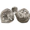 Guatemala, 2 reales  moclon,  crown countermark (Type II, 1662) on a Potosi, Bolivia, cob 2 reales,