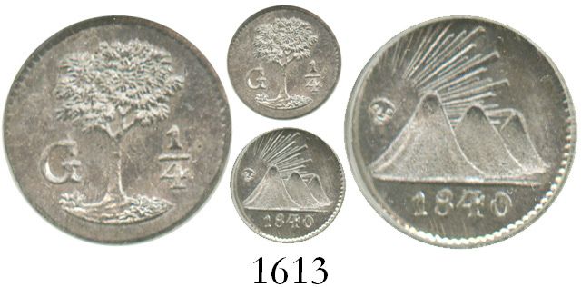 Guatemala, Central American Republic, 1/4 real, 1840/30, encapsulated NGC MS 67, tied for finest specimen known graded by NGC. KM-1. Superbly lustrous and perfectly struck, one of 27 coins at this top grade.