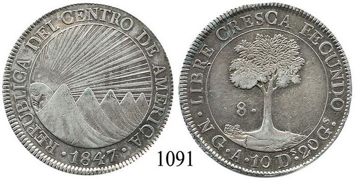 Guatemala, Central American Republic, 8 reales, 1847A. KM-4. 26.8 grams. Lustrous XF with a hint of toning, a few trivial old marks.