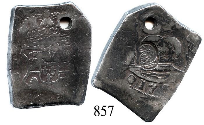 Guatemala City, Guatemala, cob 8 reales, 1751J, with sun-over-mountains countermark (Guatemala, Type