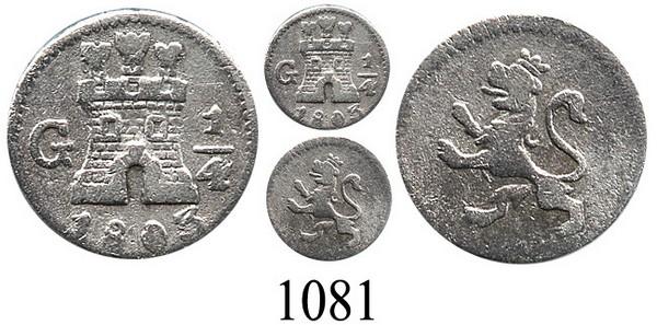 Guatemala City, Guatemala, ¼ real, Charles IV, 1803.