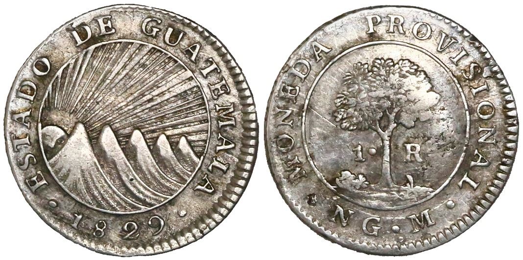 Guatemala (State), provisional 1 real, 1829M, very rare, NGC XF 45, ex-Garretson (stated on label).