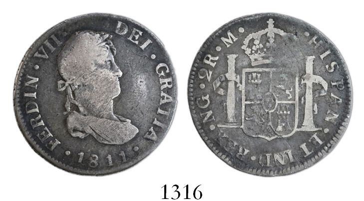 Guatemala, bust 2 reales, Ferdinand VII, 1811M. CT-885; KM-67. 6.26 grams. Richly toned About Fine, no problems.