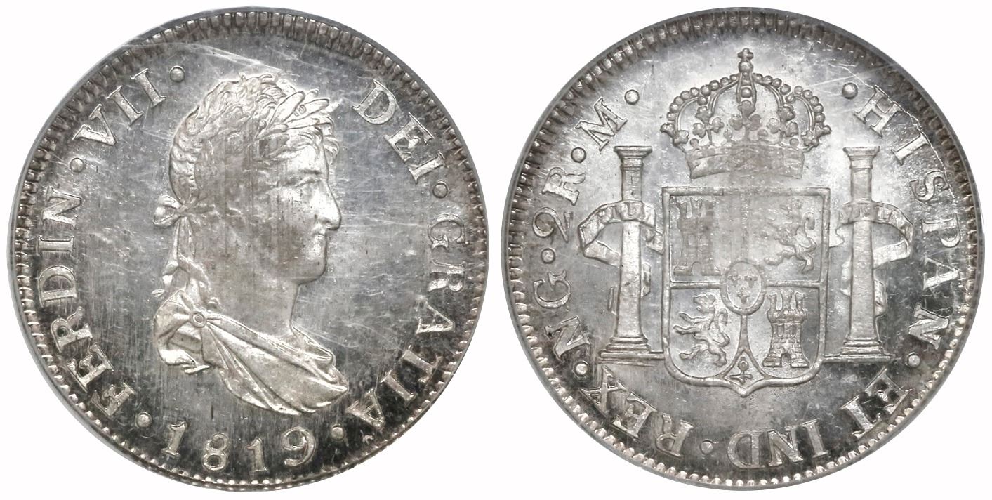 Guatemala, bust 2 reales, Ferdinand VII, 1819M, PCGS MS63.