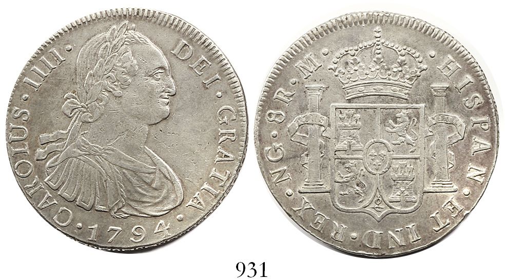 Guatemala, bust 8 reales, Charles IV, 1796M. KM-53; CT-627. 26.92 grams. Very lightly toned XF with minor marks, original luster, oval-ish flan with irregular rims (as made).