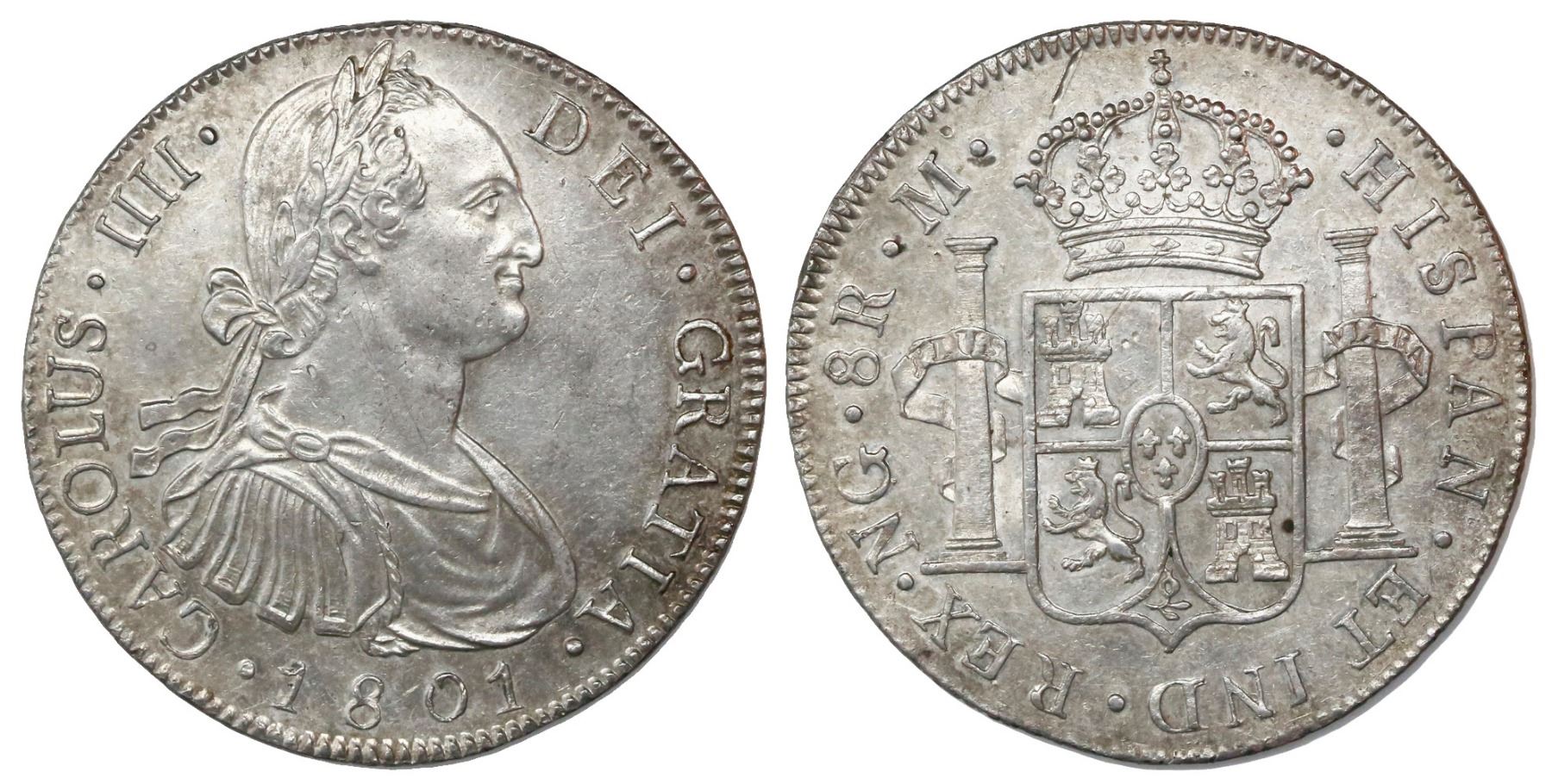 Guatemala, bust 8 reales, Charles IV, 1801M, ex-Richard Stuart.