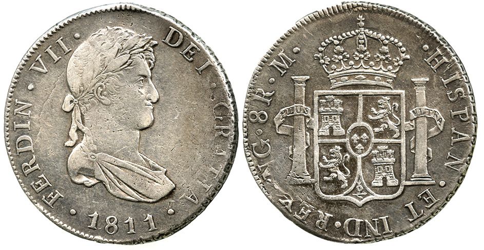 Guatemala, bust 8 reales, Ferdinand VII, 1811M. KM-69; CT-459. 26.9 grams. Lustrous XF/AU with slightly crude edges (as made), better date. Pedigreed to our Auction #5 (lot #1039).