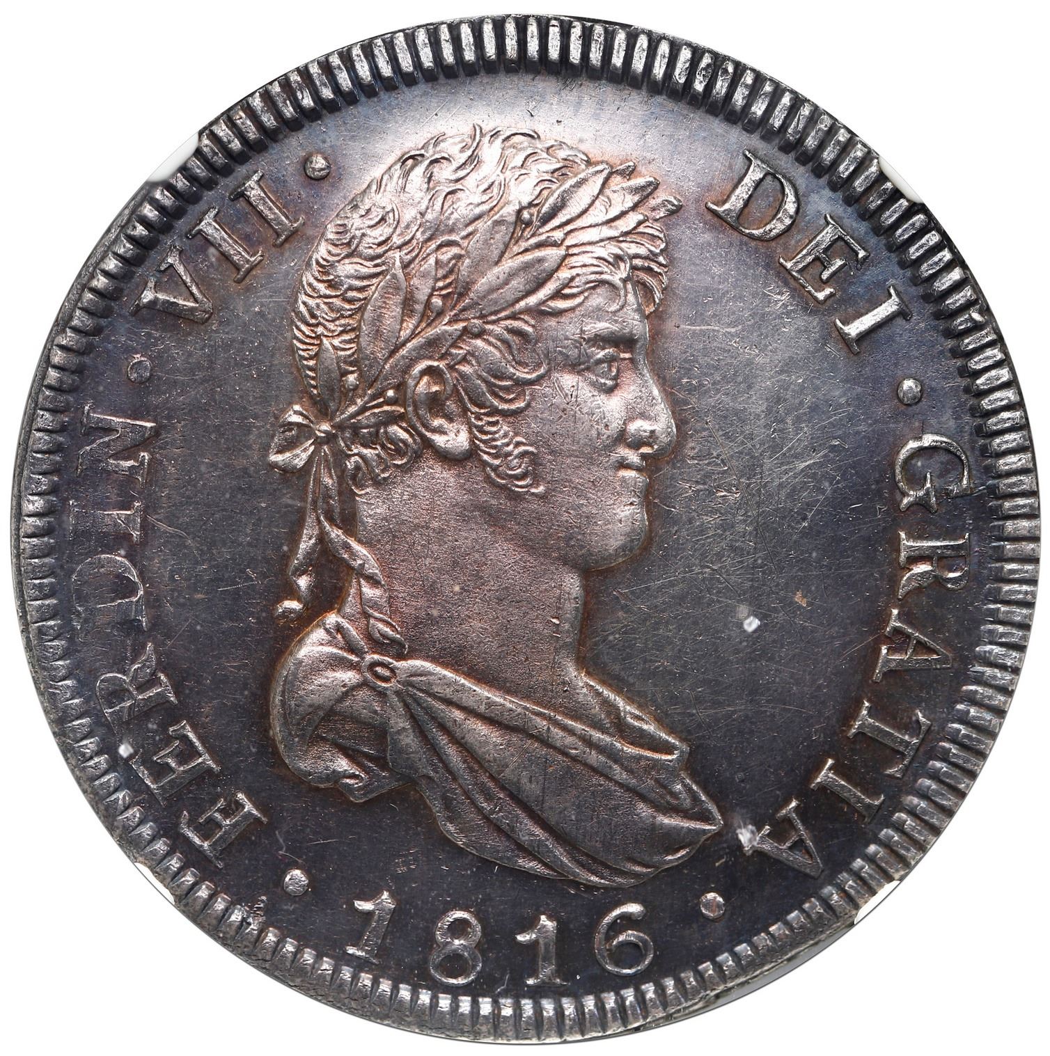 Guatemala, bust 8 reales, Ferdinand VII, 1816 M, NGC MS 60.
