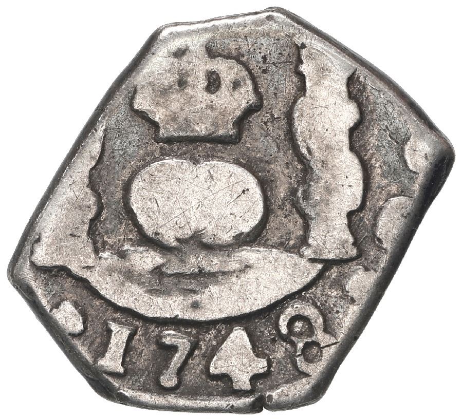 Guatemala, cob 1 real, 1748 J, ex-Trastamara. JP-1R16; S-G1a; KM-9; Cal-127. 3.22 grams. Choice full date (scarce), good full crown and globes, well-detailed but off-center shield with full assayer to left, deeply toned AVF with no hole. Pedigreed to the Antigua collection and to the Trastamara collection (Aureo auction of May 2014, lot 818).
