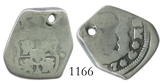 Guatemala, cob 2 reales, (17)37(J). 6.0 grams. Off-center pillars side with bold 7 of date and mintmark G, nicely centered shield, VG with contrasting toning, typical crude hole near edge.