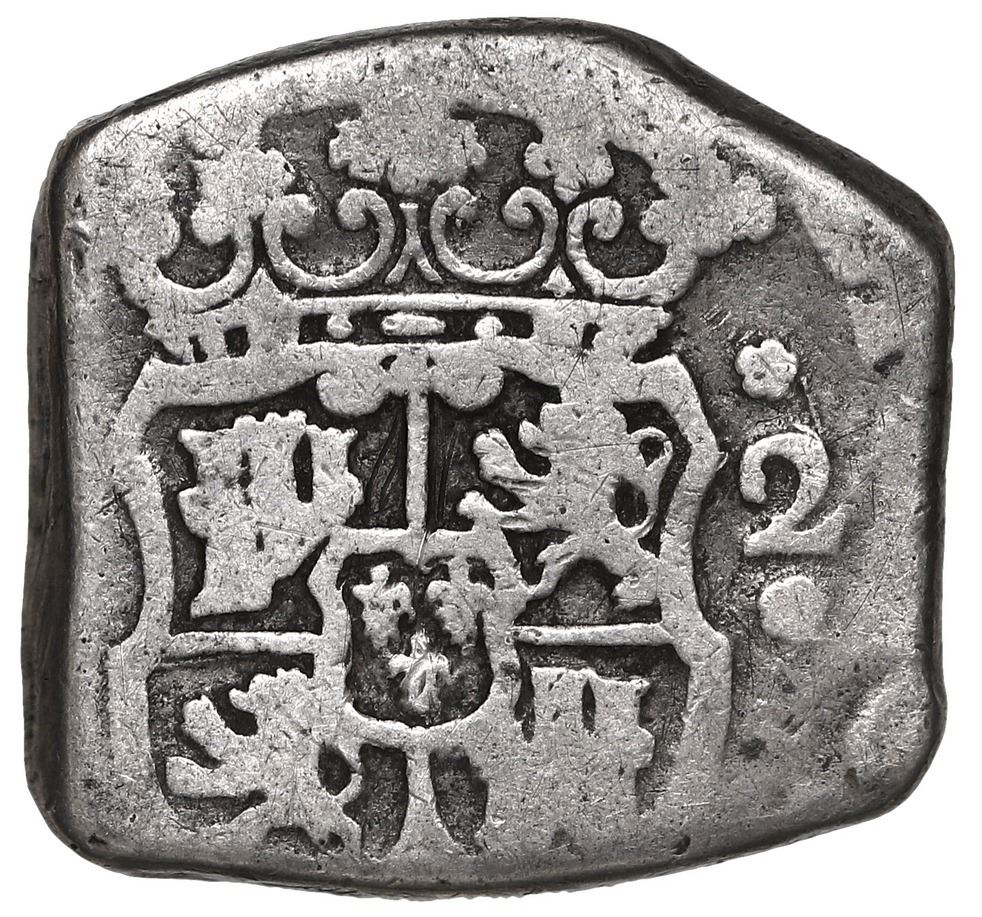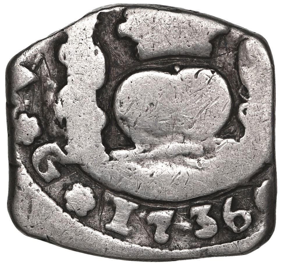 Guatemala, cob 2 reales, 1736 (J). JP-2R4; S-G1; Cal-680; KM-4. 6.41 grams. Well-centered AVF with choice full castles-and-lions and bold denomination 2, bold full date and mintmark, no hole, rated as scarce in Jara-Paiz.