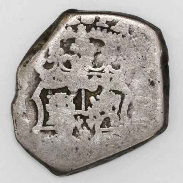 Guatemala, cob 2 reales, 1737J. S-G1; CT-1169; KM-4. 6.53 grams. Full date and mintmark (off-center pillars), rather worn (Good) but with darkly contrasting toning, no hole.