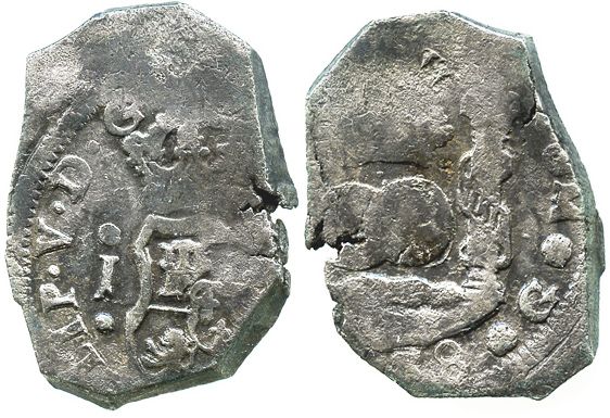 Guatemala, cob 4 reales, (17)38J. S-G1; KM-5; CT-957. 13.4 grams. One full pillar with bold 8 of date and mintmark G, bold full assayer and king's ordinal V, nicely toned and corrosion-free, small part of edge crude (as made). Recovered from: Reijgersdaal, sunk in 1747 off South Africa