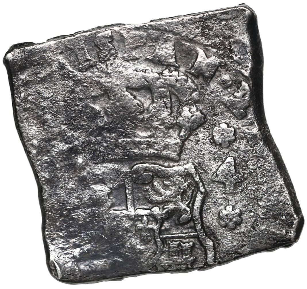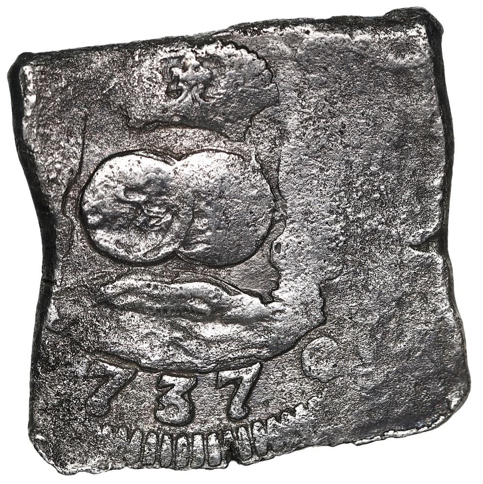 Guatemala, cob 4 reales, 1737 J. JP-4R5b; S-G1; Cal-1008; KM-5. 13.23 grams. Odd squarish shape, with bold full 737 of date and full denomination, toned XF+ with light surface pitting (probably ex-Reijgersdaal wreck of 1747), no hole.