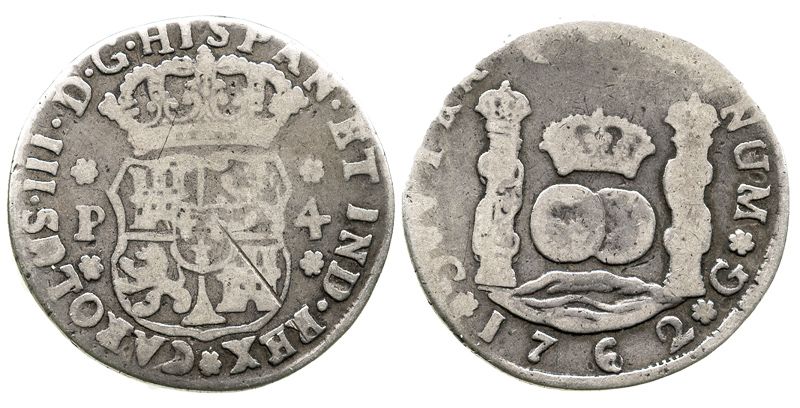 Guatemala, pillar 4 reales, Charles III, 1762P.