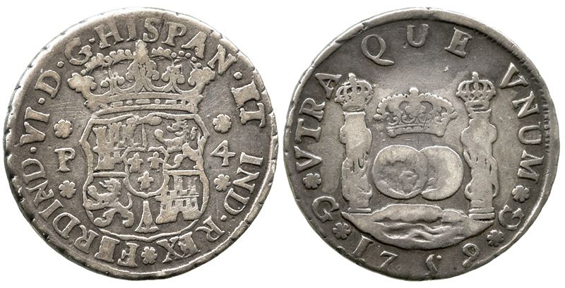 Guatemala, pillar 4 reales, Ferdinand VI, 1759P.