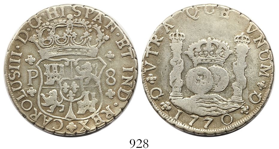 Guatemala, pillar 8 reales, Charles III, 1770P.