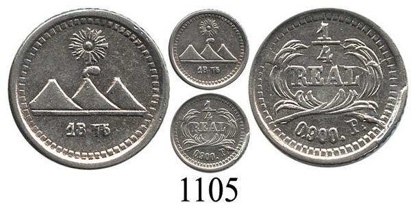 Guatemala, ¼ real, 1875/3P. KM-146. 0.7 gram. Very lustrous UNC, no toning.