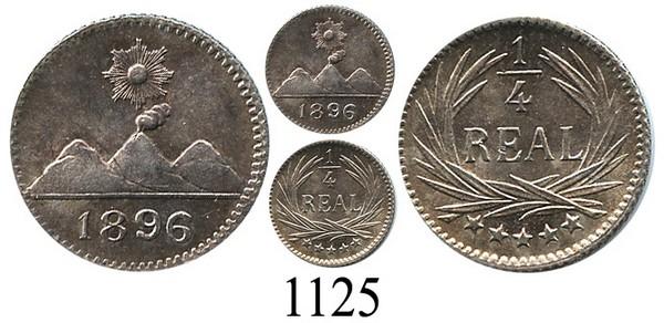Guatemala, ¼ real, 1896. KM-162. 0.8 gram. Lustrous BU with lovely iridescent toning.