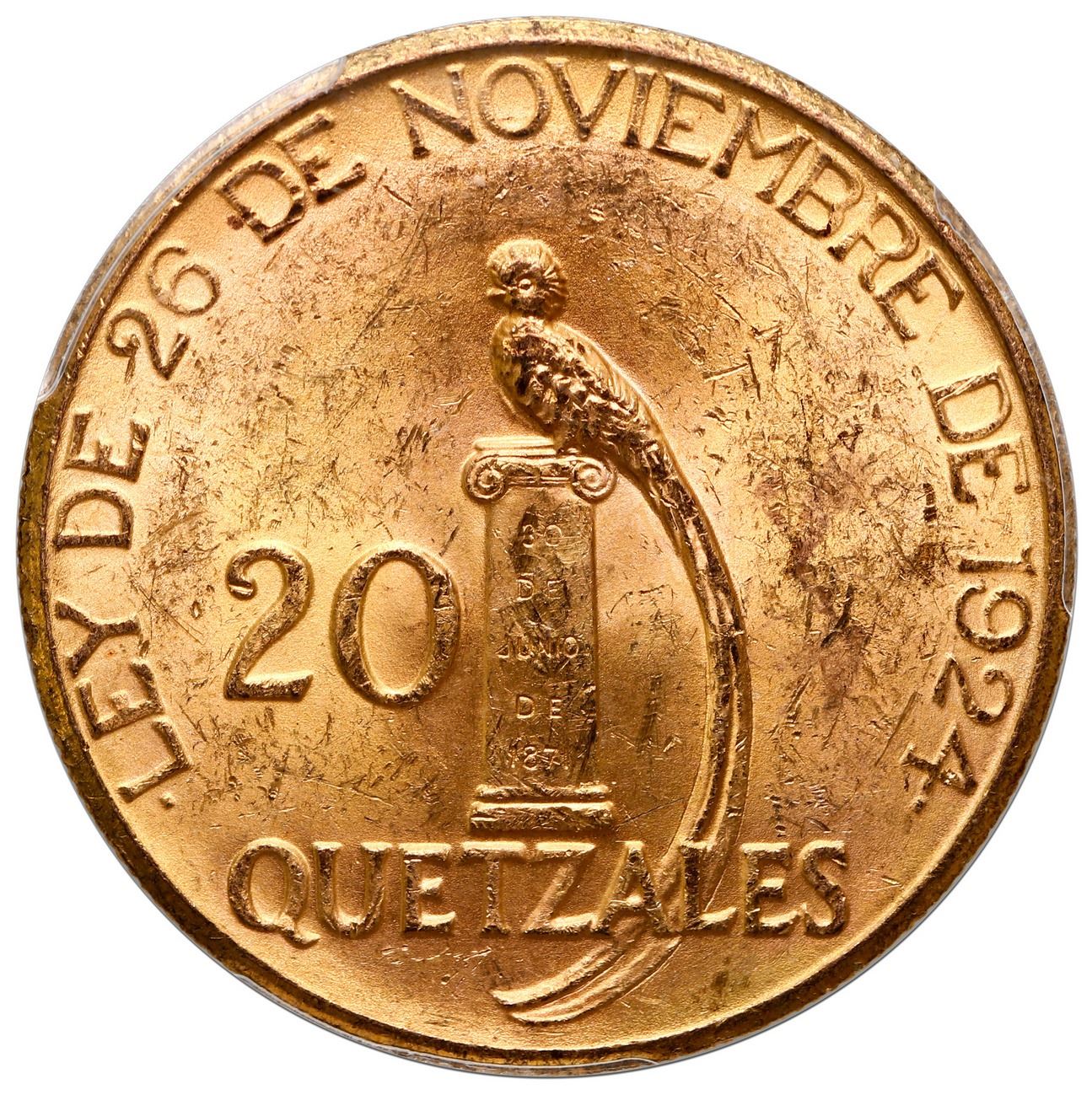 Guatemala (struck at the Philadelphia mint), gold 20 quetzales, 1926, PCGS MS63.