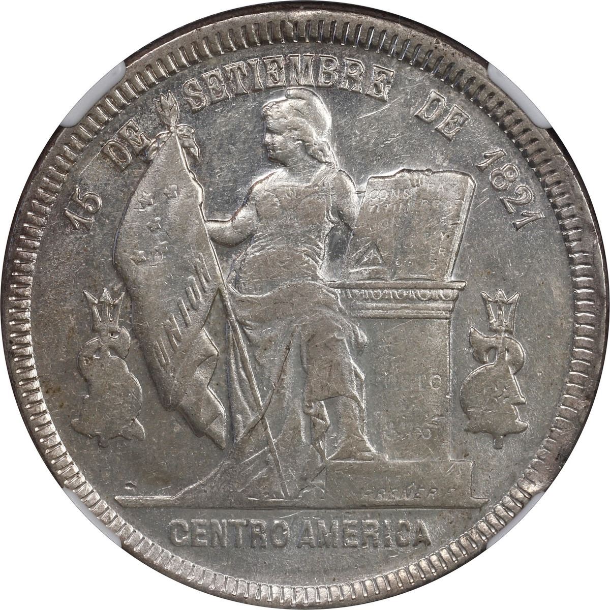 HONDURAS, Tegucigalpa, 1 peso, 1891/89, NGC AU 58. Stickney-C315; KM-52. Well-struck piece with lustrous fields, clear overdate.