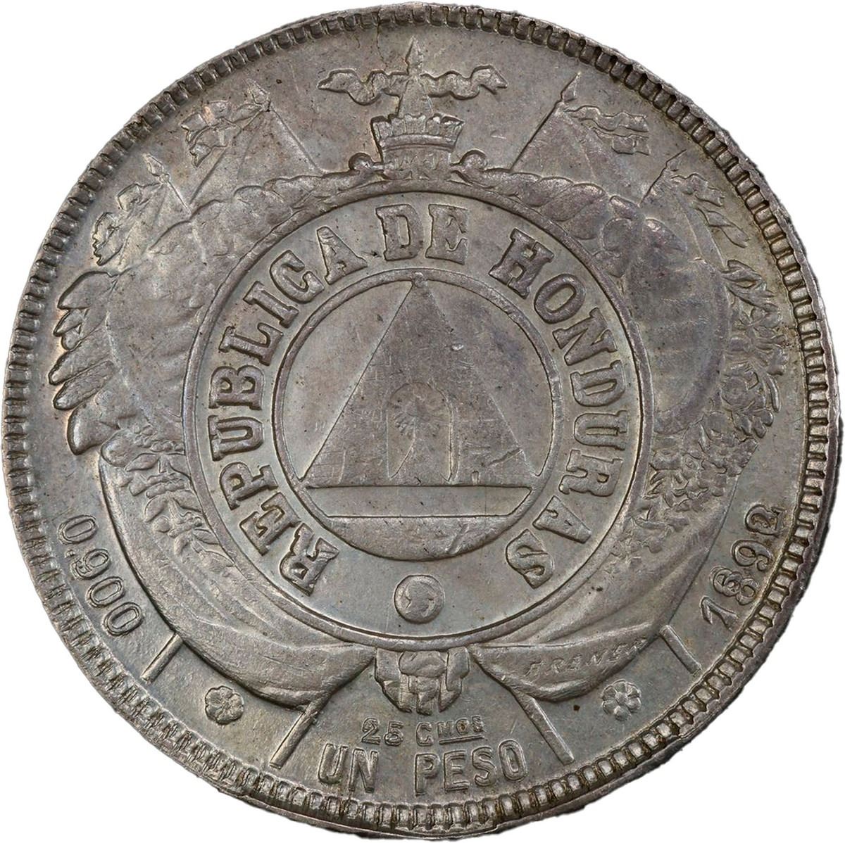 HONDURAS, Tegucigalpa, 1 peso, 1892/0, PCGS AU details / cleaned.