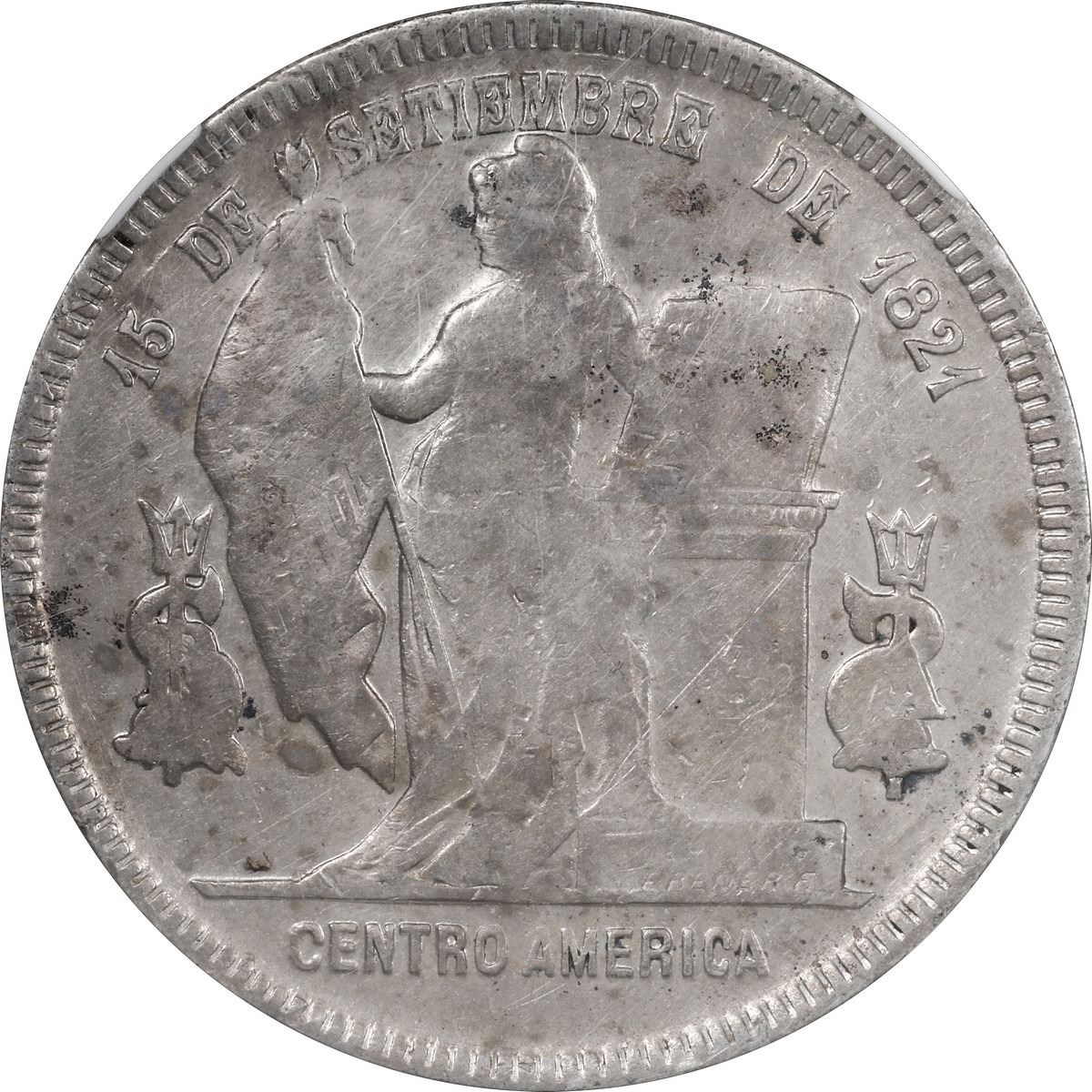 HONDURAS, Tegucigalpa, 1 peso, 1893/1, rare, NGC VF details / cleaned. Stickney-C315; KM-52. Typically weakly struck but with full rims, a few small marks and dark speckles in addition to surface hairlines, but the all-important overdate quite clear (key to the series, missing in many strong collections).
