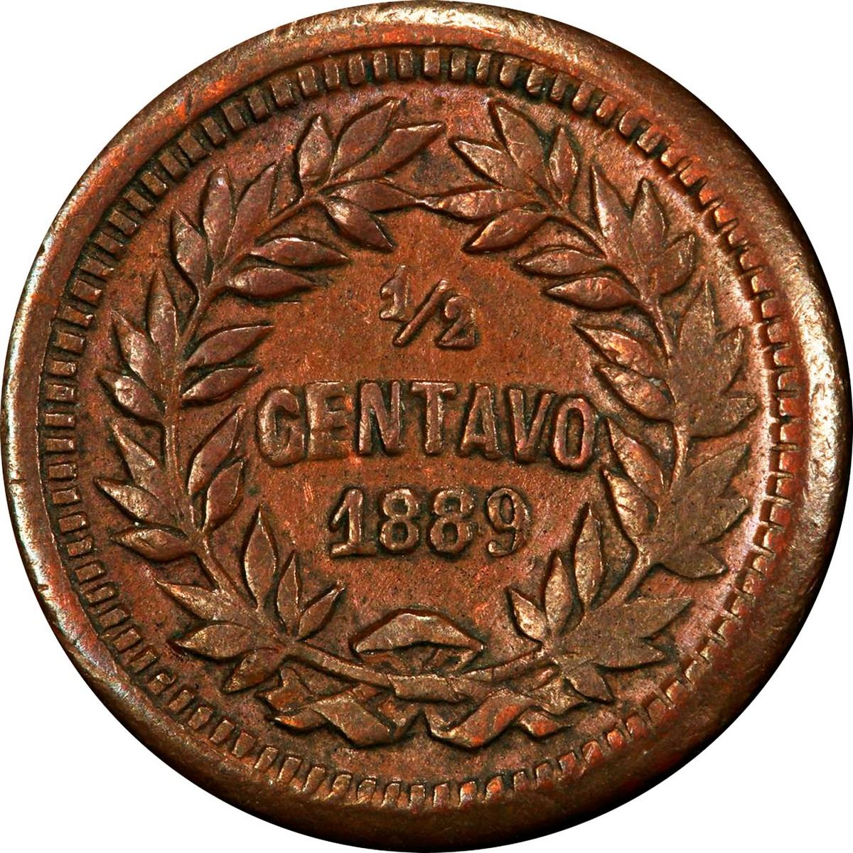 HONDURAS, Tegucigalpa, bronze ½ centavo, 1889, PCGS AU58, finest known in PCGS census.