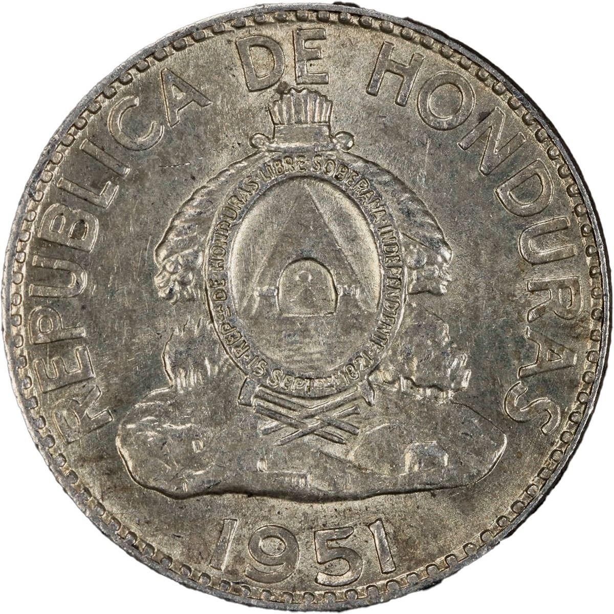 HONDURAS, struck at the Philadelphia Mint, 20 centavos, 1951, PCGS MS62.