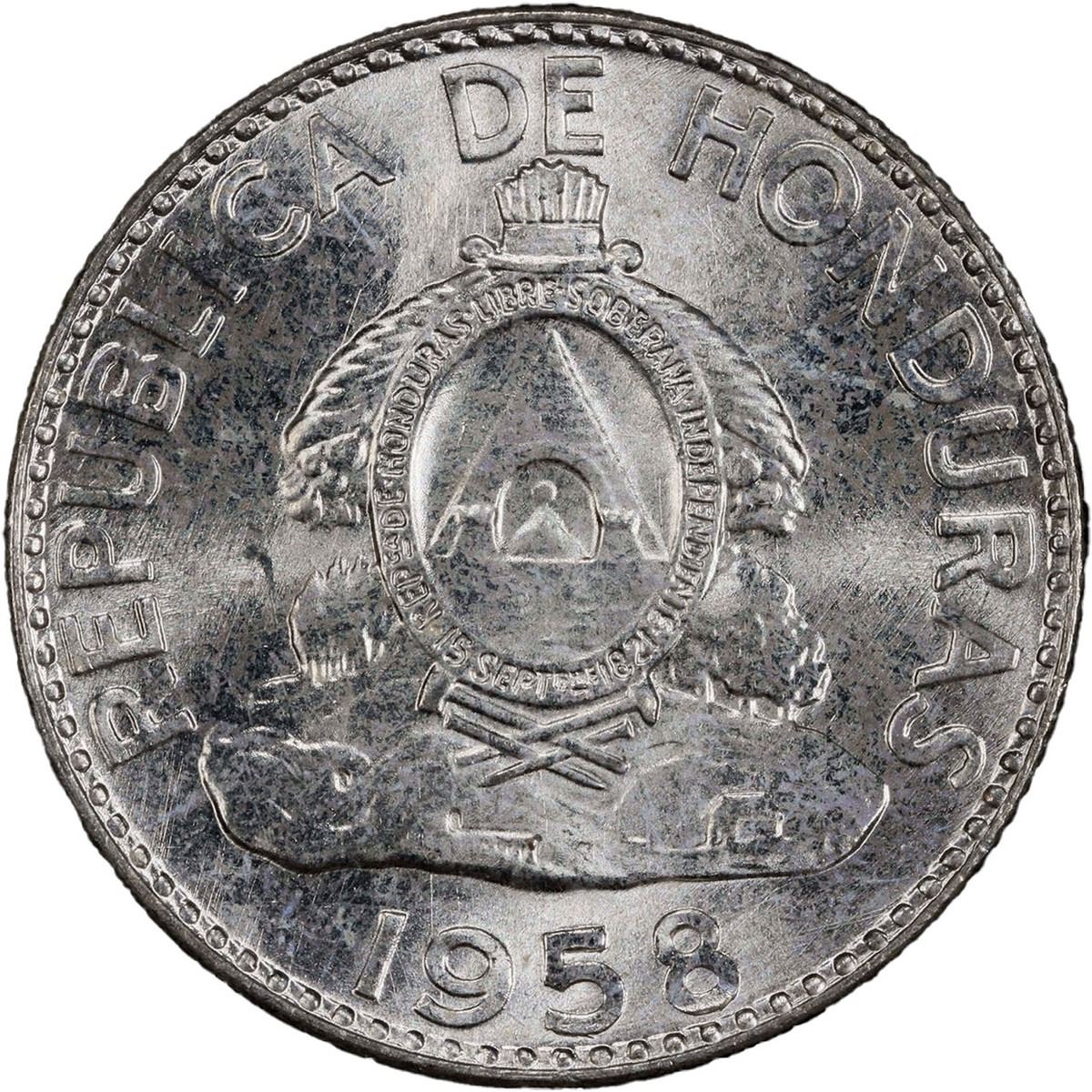 HONDURAS, struck at the Philadelphia Mint, 20 centavos, 1958, PCGS MS65.