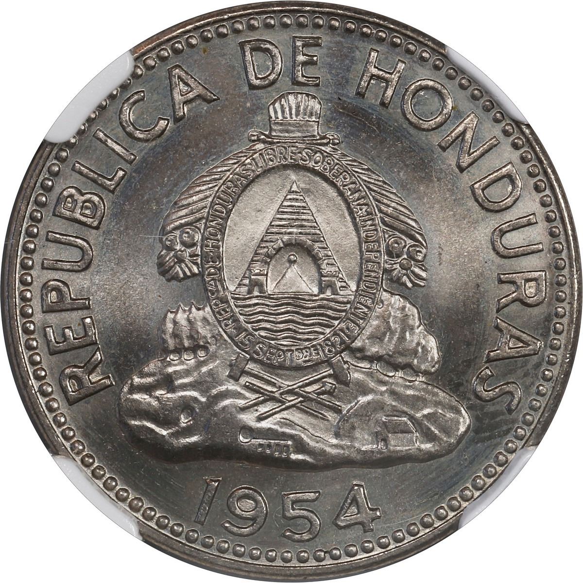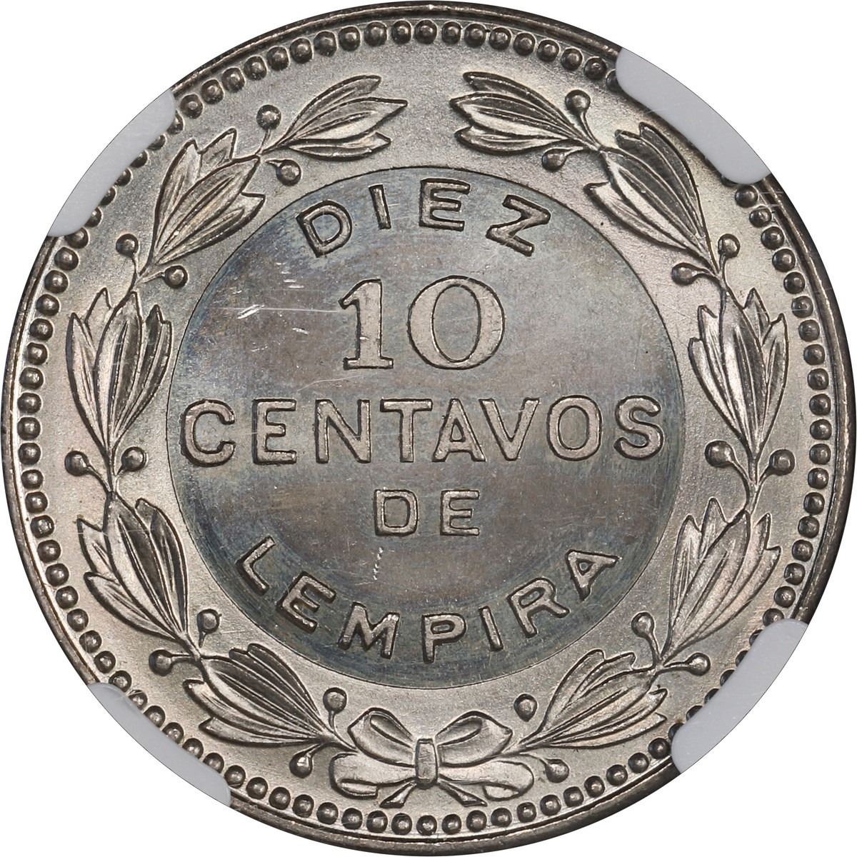 HONDURAS, struck in Germany, copper-nickel 10 centavos, 1954, NGC MS 67.
