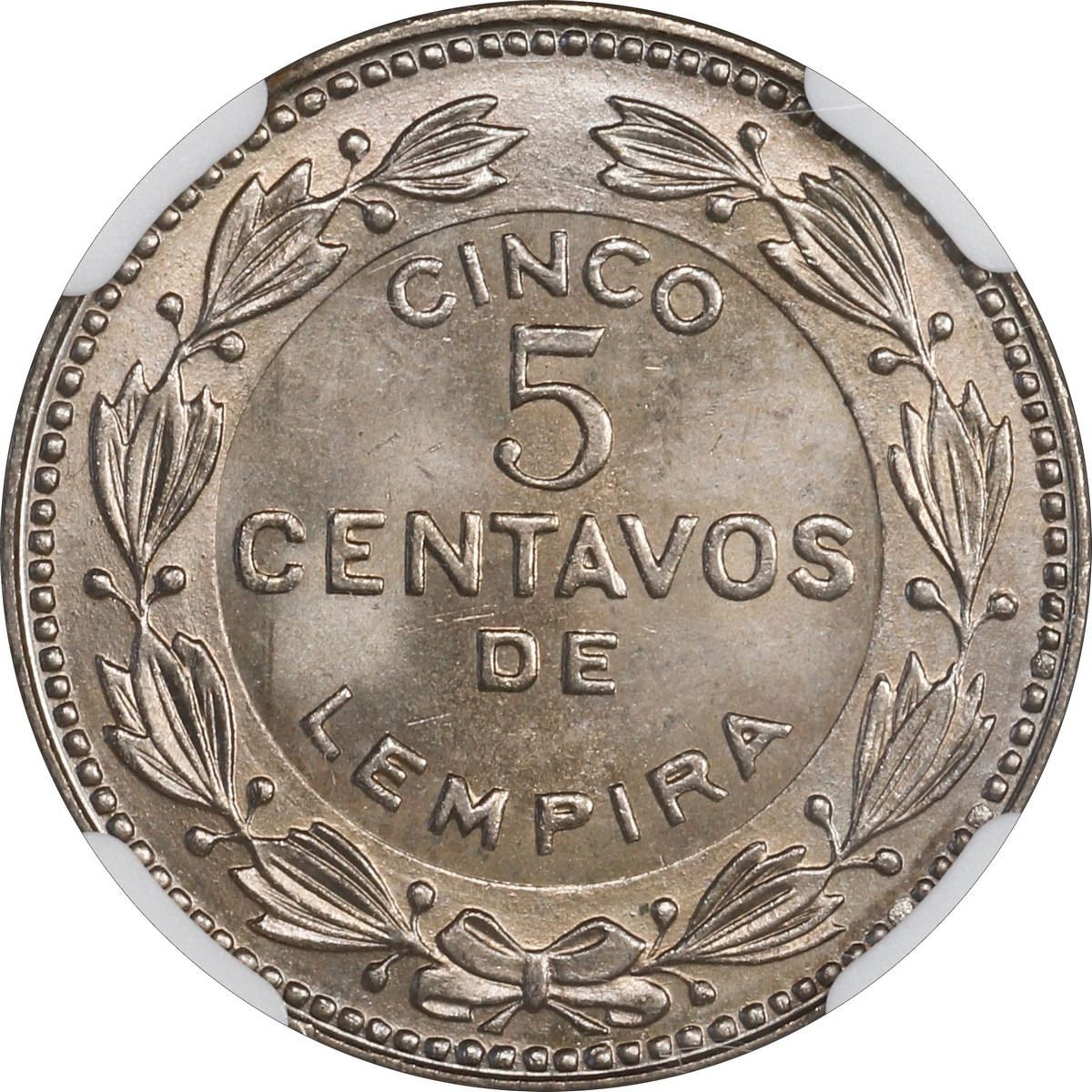 HONDURAS, struck in Germany, copper-nickel 5 centavos, 1954, NGC MS 66.