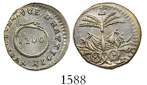 Haiti (Western Republic), 12 centimes, AN XI (1814).