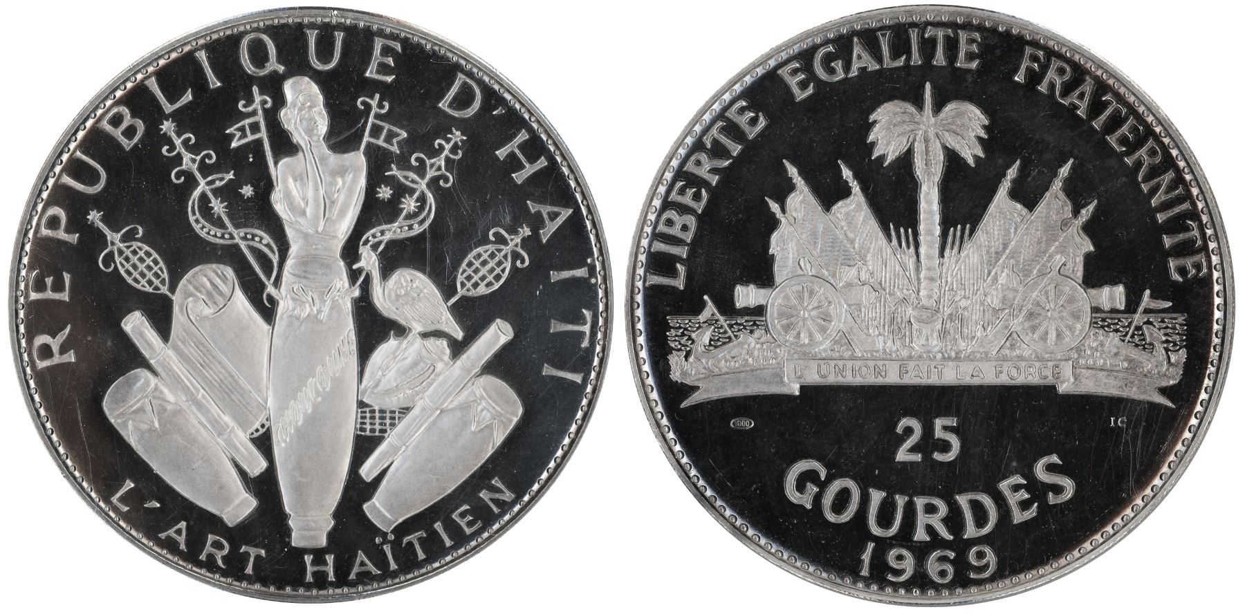 Haiti, proof 25 gourdes, 1969IC, Haitian Art, NGC PF 66 Ultra Cameo.