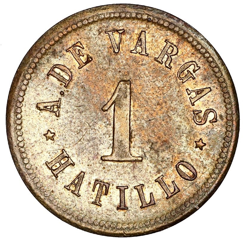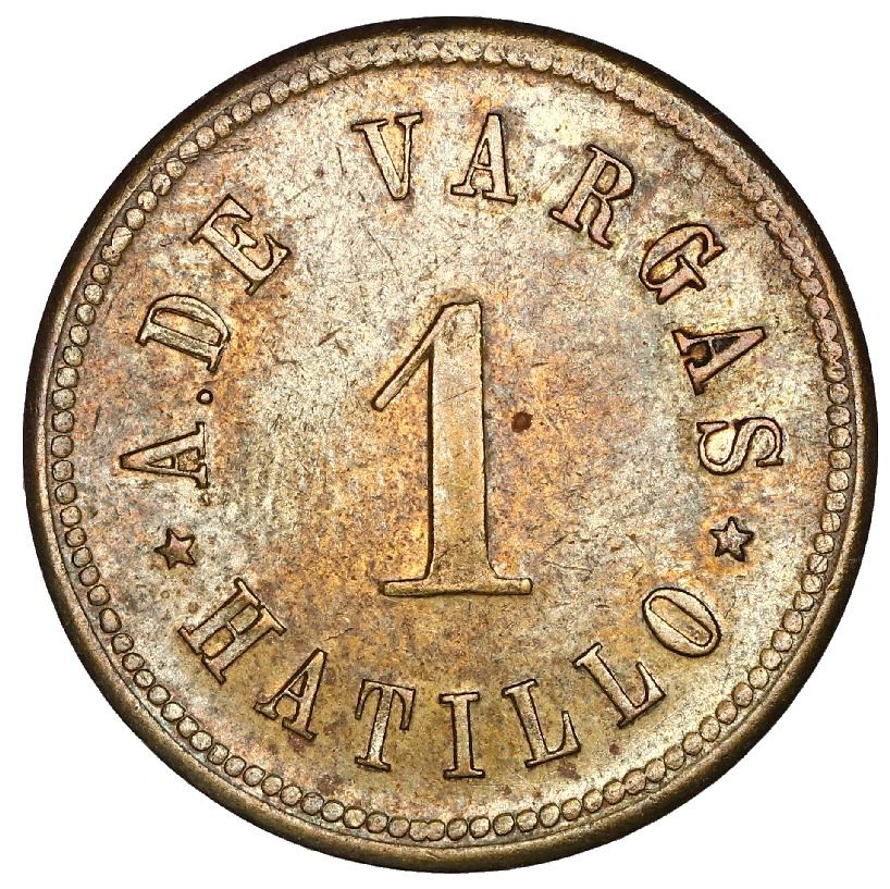 Hatillo, Puerto Rico, brass 1 centavo token, A. de Vargas (ca. 1880), very rare, ex-Roehrs.