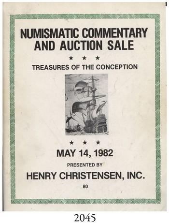 Henry Christensen (Madison, NJ). Treasures of the Conception (May 14, 1982). VF. The one and only catalog of silver cobs (including some very important Colombian rarities) from the Concepcion (1641), with excellent numismatic analysis and commentary. Pedigreed to the Tom Sebring Treasure Library.
