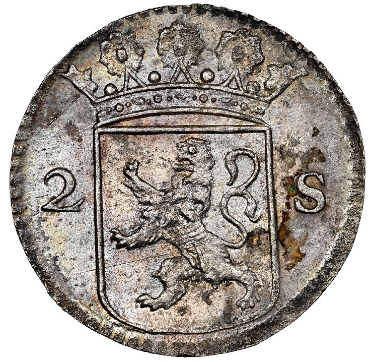 Holland, United Netherlands, 2 stuivers, 1724, NGC MS 62 / Akerendam (Shipwreck Blue Label). KM-48. Lovely toning over strong luster, also strong strike and smooth fields except for just a few tiny marks (see Express Session for details-graded examples). Recovered from: Akerendam, sunk in 1725 off Norway