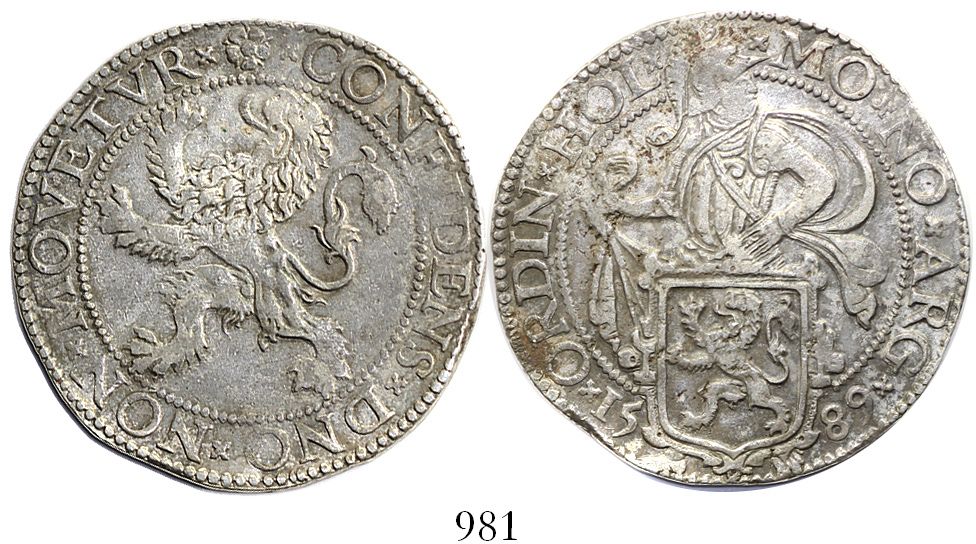 Holland, United Netherlands, "lion" daalder, 1589. Dav-8838; Delm-831. 27.11 grams. Lightly toned XF with choice full details all over, even a hint of luster in spots.
