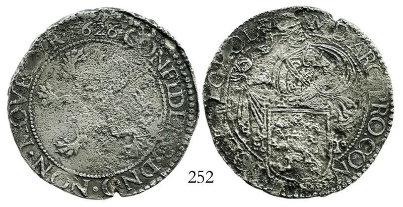 Holland, United Netherlands, "lion" daalder, 1626, rare. KM-23.1. 24.3 grams. High grade and well-detailed but with distracting surface corrosion, clear date (rare for this mint), nicely toned. With salvagers' certificate #RD22. Recovered from: Campen, sunk in 1627 off the Isle of Wight, south of England