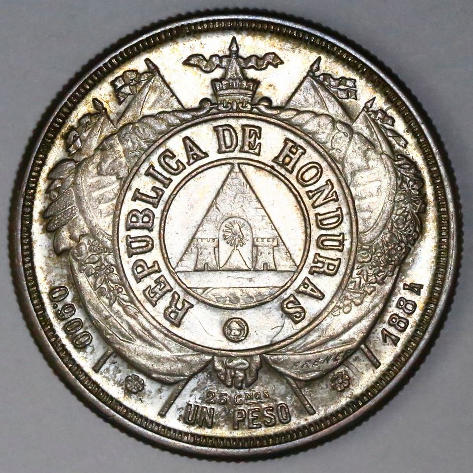 Honduras, 1 peso, 1884, NGC AU details / cleaned.