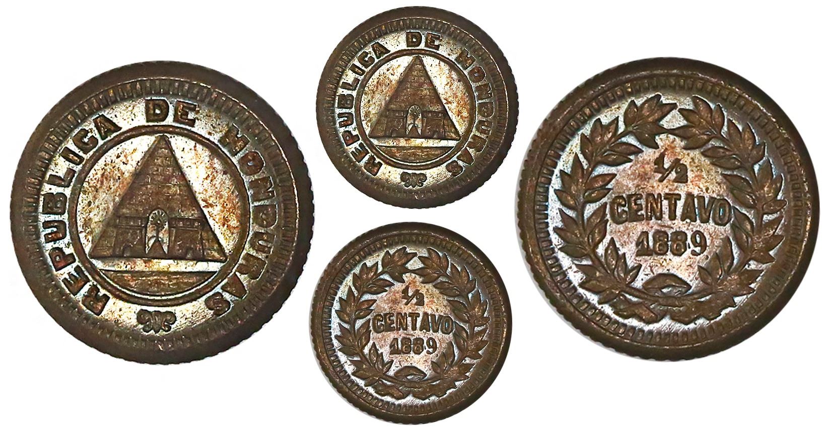 Honduras, bronze 1/2 centavo, 1889, NGC MS 65 BN, finest known in NGC census.