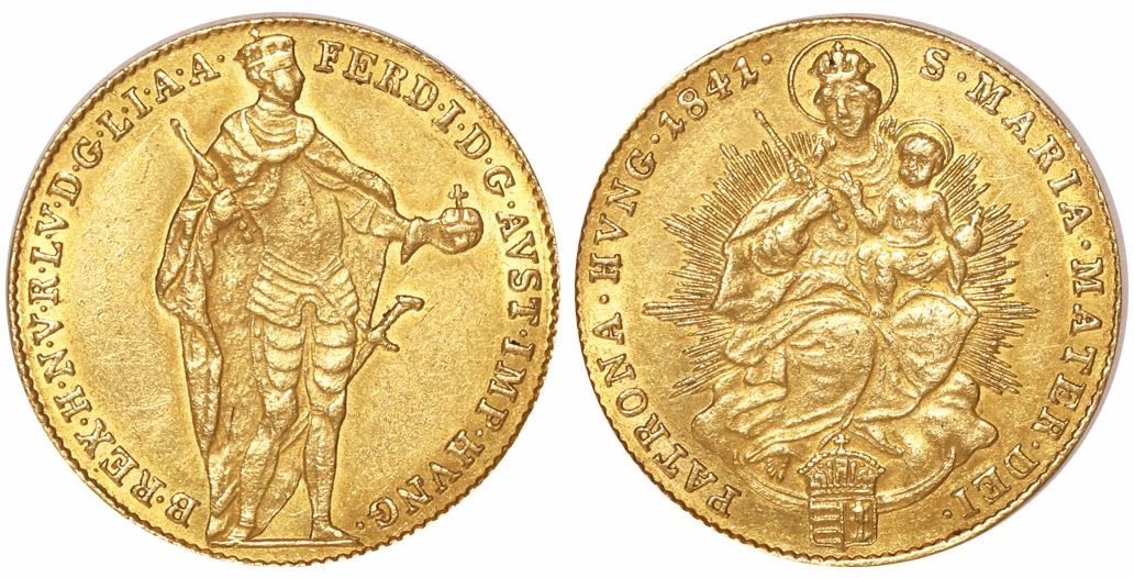 Hungary, ducat, Ferdinand V, 1841. KM-425. 3.48 grams. AU with muted luster.