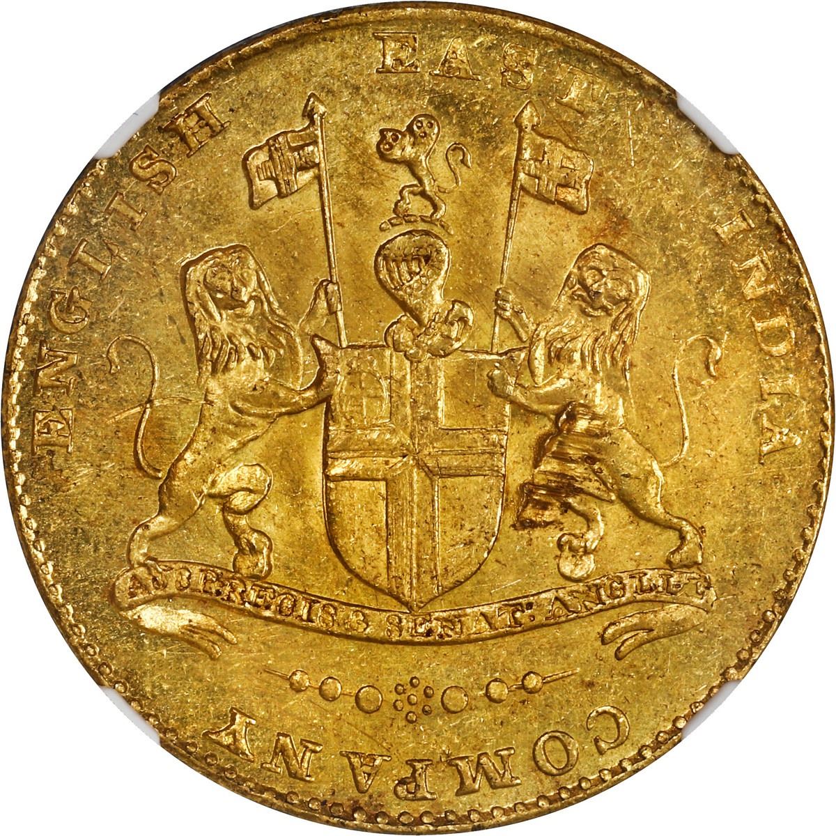 INDIA (British), Madras Presidency, gold 1 mohur, no date (1819), NGC UNC details / obv cleaned (Shi