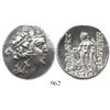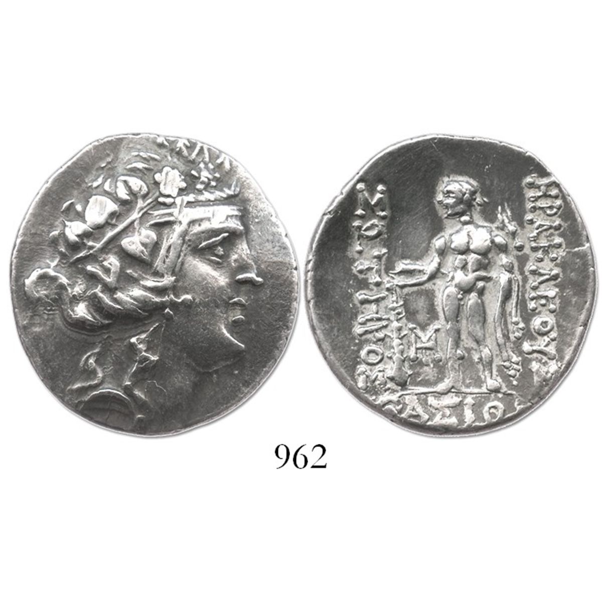 ISLANDS of THRACE, Thasos. After ca. 146 BC. AR tetradrachm. Cf Prokopov group XIV, class CD-1094 (V1/R877) = Prokopov & Kochev 27. Hoover 359. Imitative series. 16.6 grams. Diademed head of youthful Dionysos right, wreathed with ivy / Herakles standing facing, head left, supporting grounded club and holding lion's skin draped over arm; monogram in inner left field. Bold, toned AVF with slight bend.