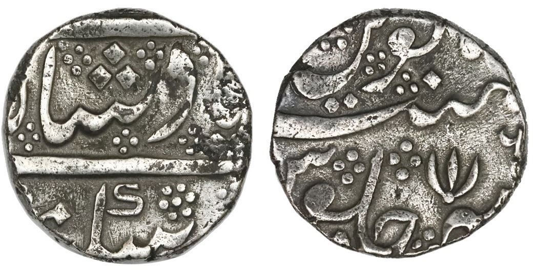 India (Madras Presidency), Arkot mint, 1 rupee, regnal year 6 (frozen date / ca. 1759-82), open lotu