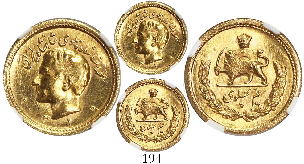 Iran, 1/2 pahlavi, SH1329 (1950), Muhammad Reza Pahlavi Shah, encapsulated NGC MS 64, very rare (key date). KM-1149 Very low mintage of only 75 coins, this one quite choice, with brilliant luster and high relief, strong stress lines all over.
