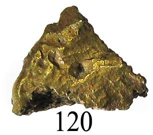 Irregular pie-shaped cut of a small gold disk, from the Espadarte (1558). 2.8 grams, about 3/8" wide and 1/8" thick. Irregular triangular "pie cut" of a small, thin, disk of refined gold, traces of sediment and coral on surface, undoubtedly intended as a coin-like unit and therefore of significant numismatic value. From the Espadarte (1558), with Arqueonautas certificate #IDM-006/02/0929.