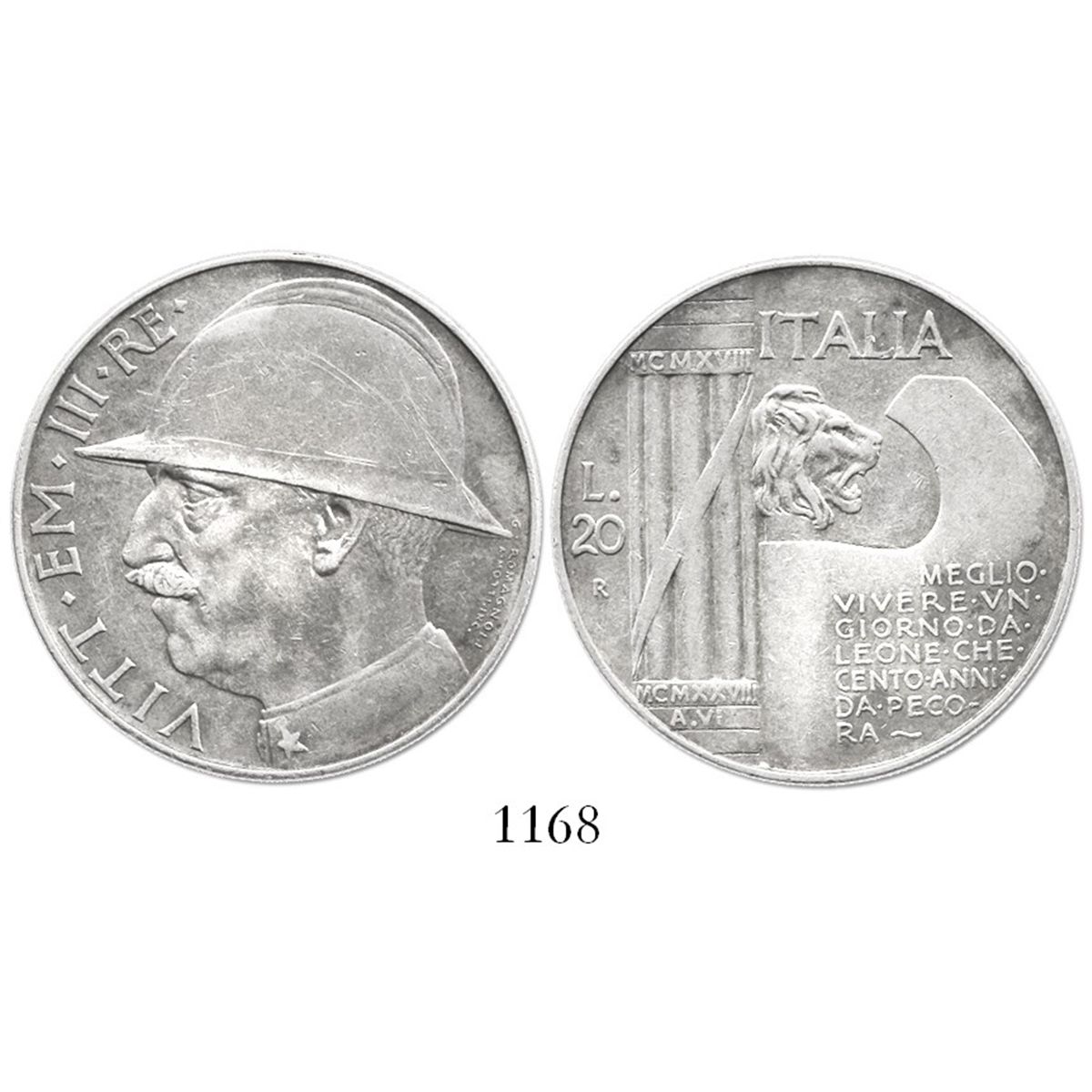 Italy (Kingdom), 20 lire, Vittorio Emmanuel III, 1928-R (AN VI), WWI commemorative.