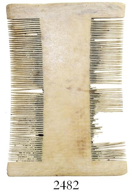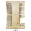 Ivory lice comb. 12 grams, 2" x 3". Remarkably close to intact, with less than a tenth of its teeth missing, typical 2-sided design. From the Spanish 1733 Fleet, Florida Keys, pedigreed to the Marty Meylach collection.